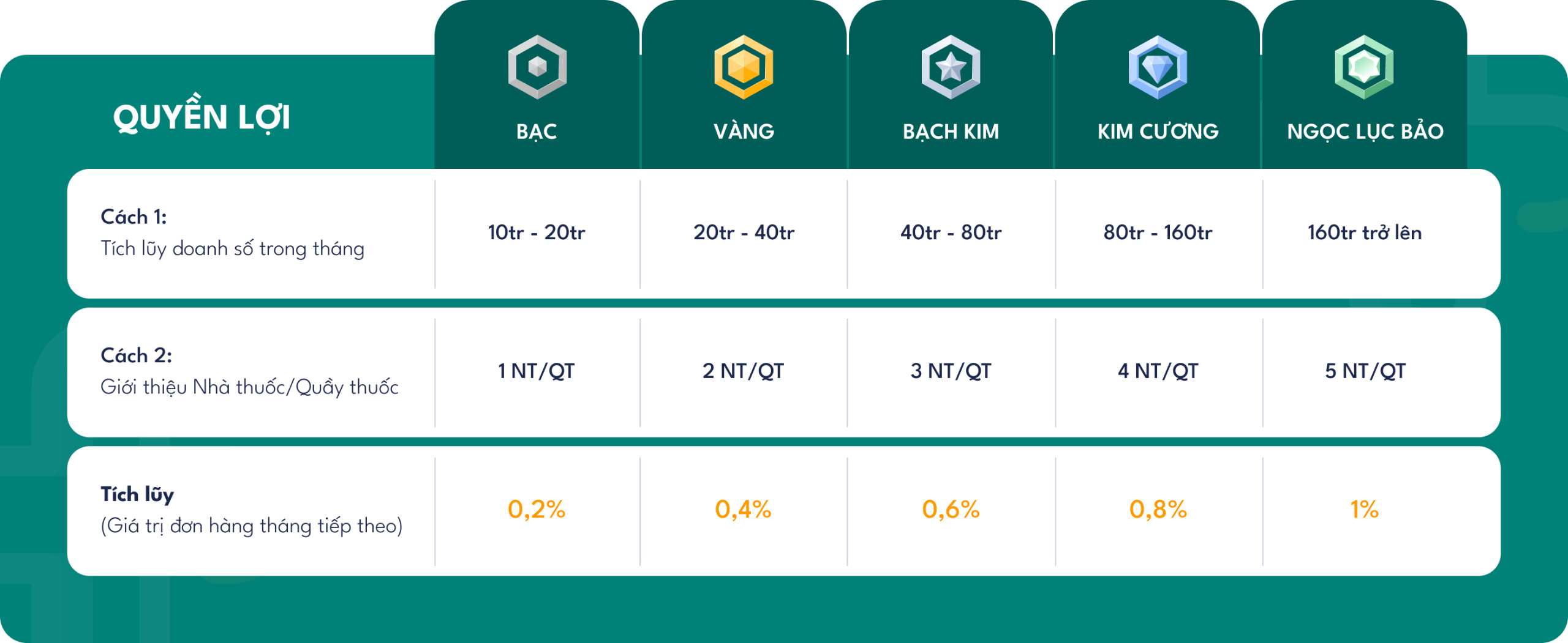 - Trong trường hợp tham gia cả tích lũy doanh số theo tháng và giới thiệu bạn bè đặt hàng: Khách hàng chọn hạng cao nhất để áp dụng.